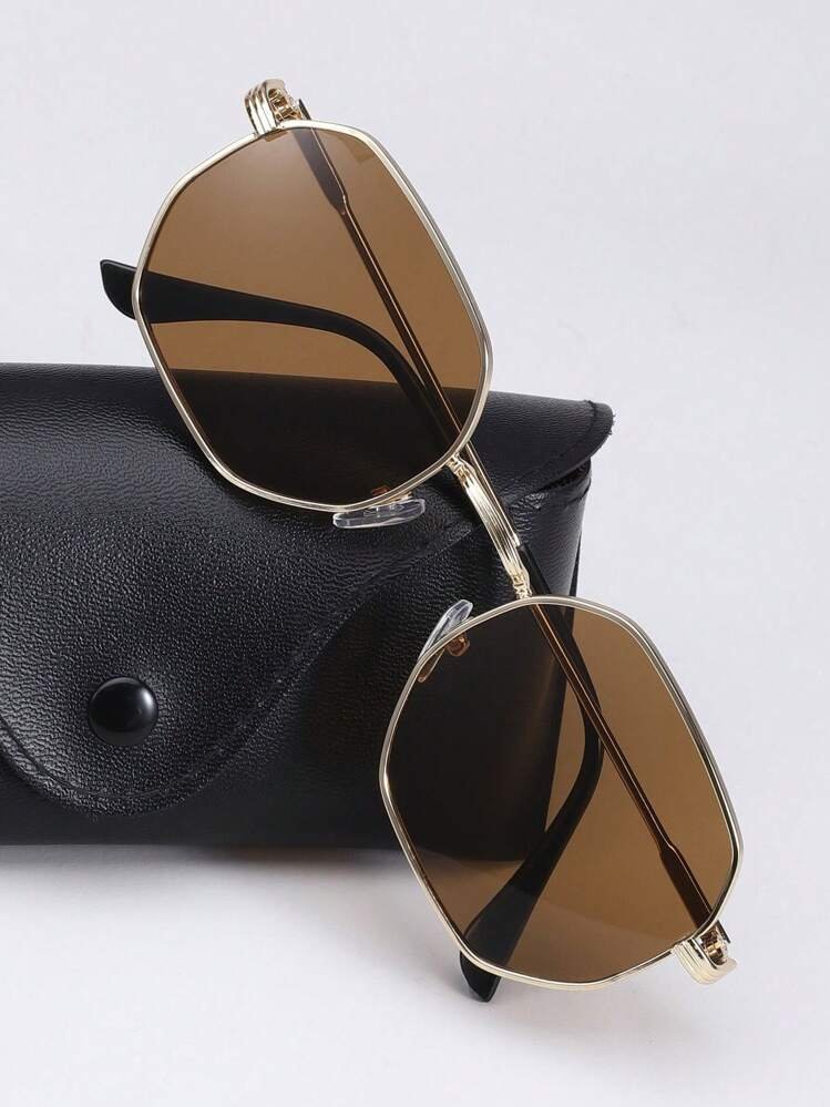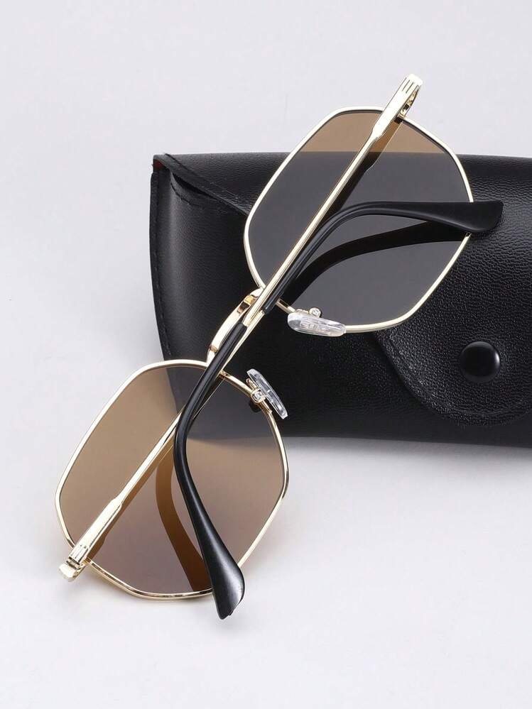 نظارات رجالية مربعة فاخرة عصرية، تصميم إطار معدني، كل زوج يأتي مع 1 علبة نظارات أنيقة، وشاملة، تجذب الأنظار. للحياة اليومية والشاطئ والقيادة والسفر الخارجي، كما توفر